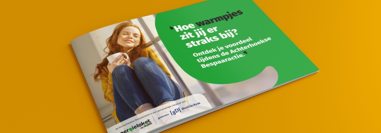 Agem Energieloket organiseert namens diverse gemeentes de Achterhoekse Bespaaractie: samen met andere Achterhoekers je huis isoleren en daardoor voor een betere prijs inkopen. Bij lekker in vorm mochten we qua tekst en beeld meehelpen aan de realisatie van de bijbehorende campagne, in de vorm van onder andere een informatiebrochure per gemeente, een advertentie en outdoor posters.