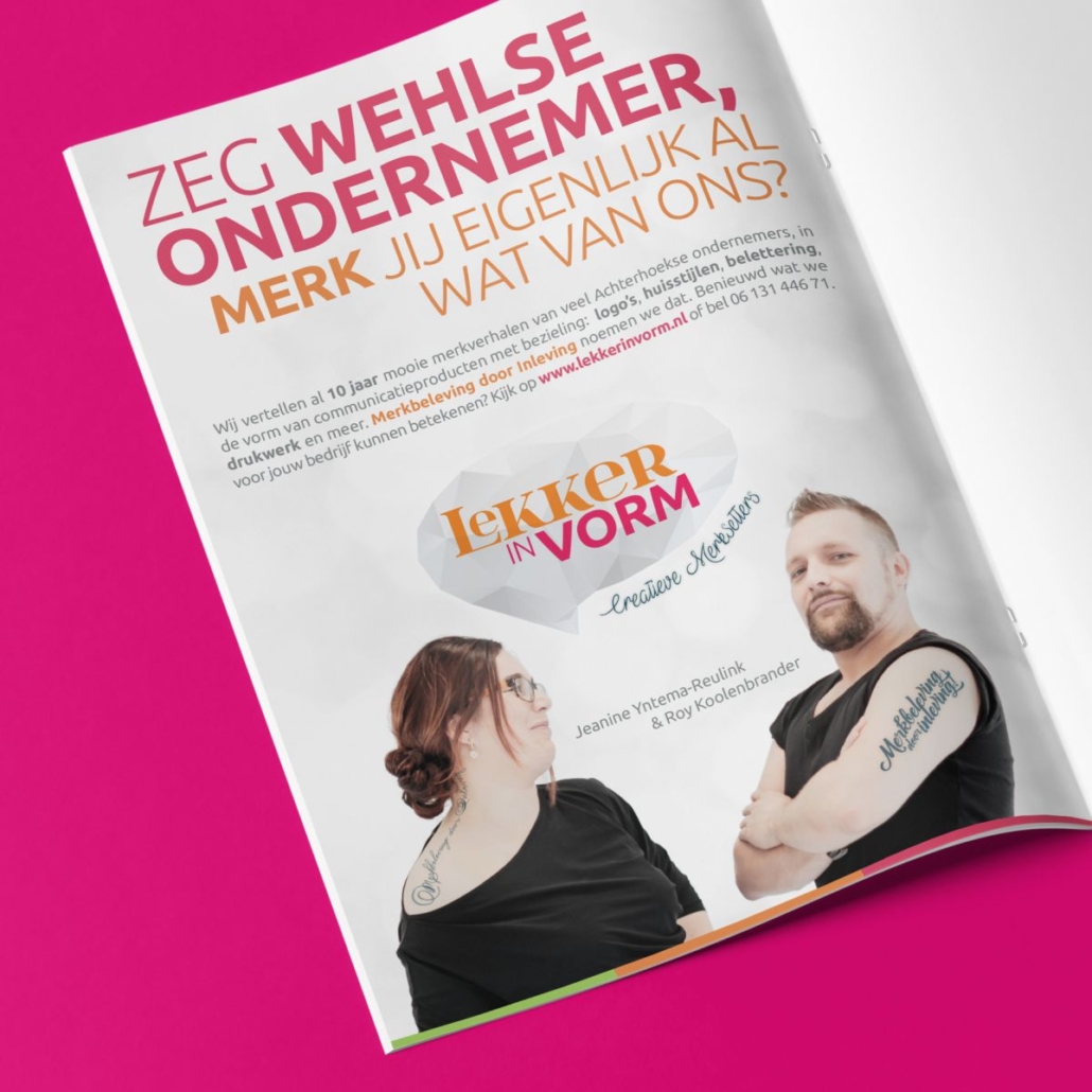 “Zeg Wehlse ondernemer, merk jij eigenlijk al wat van ons?” Met deze directe vraag staan we met een paginagrote advertentie in de Möllewiek van dit jaar, de carnavalskrant van carnavalsvereniging de Mölledraejers uit Nieuw-Wehl. Als Wehlse pur sang mag een foto van Jeanine hierin natuurlijk niet ontbreken.