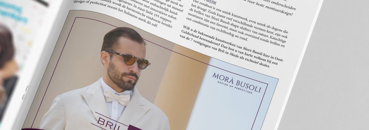 In de Najaarskrant van Gilsing Herenmode besteedt Bril-in-Mode ditmaal aandacht aan het exclusieve montuurmerk Morà Busoli. Bij lekker in vorm mochten we weer zorgen voor een mooie tekst en een bijpassende advertentie.