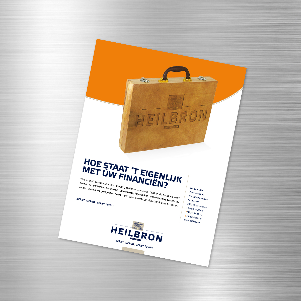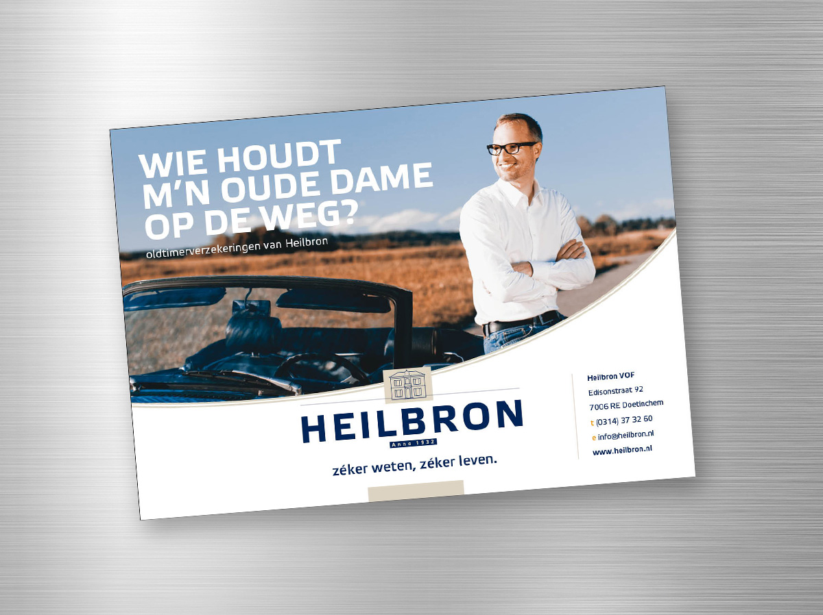 Voor diverse doelen en media ontwerpt lekker in vorm advertenties voor Heilbron in een herkenbare stijl. Niet alleen qua vorm, maar ook qua inhoud: no nonsens, menselijk en met een twist.
