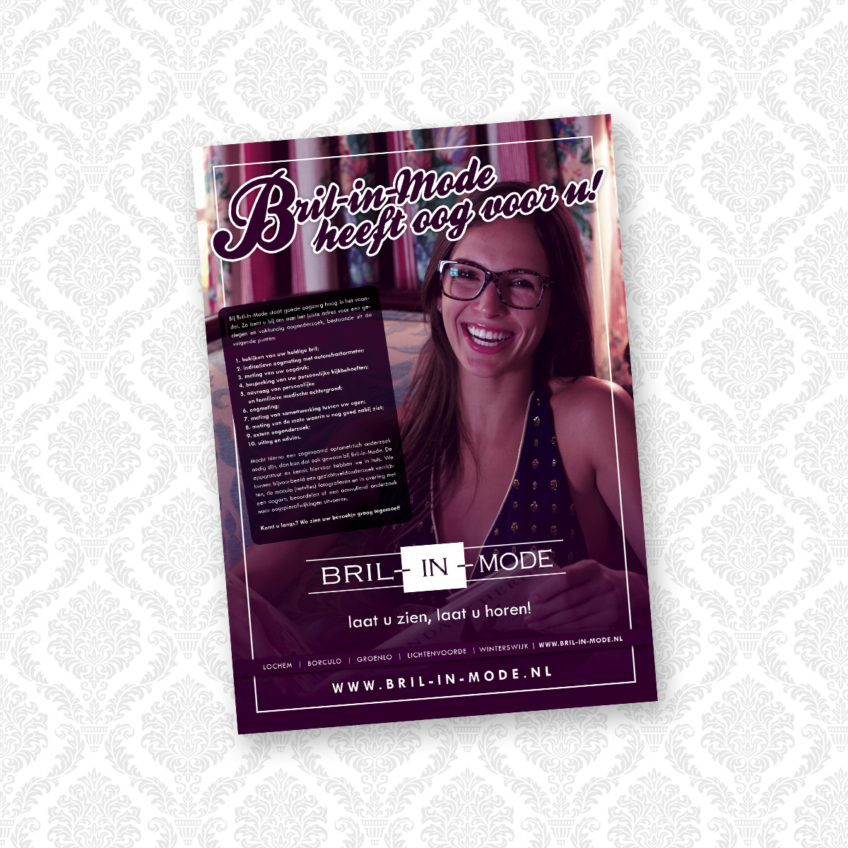 Bril-in-Mode adverteert periodiek in diverse magazines en kranten. lekker in vorm zorgt voor de advertentieontwerpen: soms actieadvertenties, soms imagoadvertenties en soms informerend.