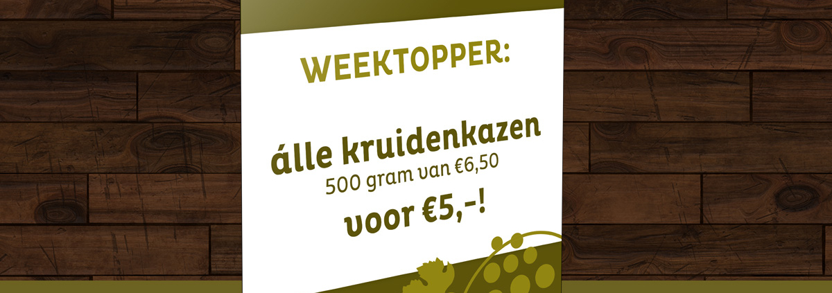 Dijkman Delicatessen heeft wekelijks een smakelijke aanbieding: De Weektopper. lekker in vorm voorzag Bianca Dijkman van een sjabloon waarin ze zelf heel eenvoudig iedere week de aanbieding kan zetten en waarmee ze dus telkens zelfstandig een advertentie in huisstijl bij de krant aan kan leveren.