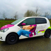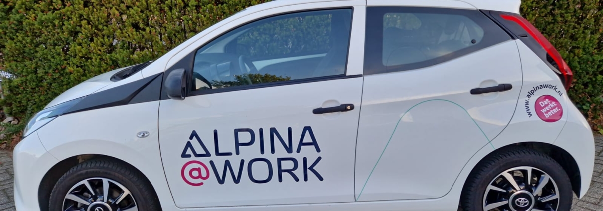 Op zoek naar een leuke autobelettering? Denk er dan eens aan om de spiegels mee te beplakken of om elementen van de auto zelf bij de belettering te betrekken, zoals de tankdop. Voor Alpina@Work mochten we bij lekker in vorm deze opvallende, speelse autobelettering ontwerpen. Daar kun je mee aankomen!