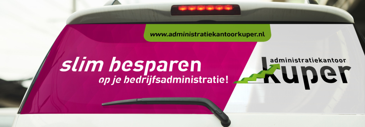 Voor Bianca Kuper mochten we bij lekker in vorm het merkverhaal van Administratiekantoor Kuper over ‘slim besparen’ vertalen naar een bondige achterruitbelettering voor haar auto. Handig uitgevoerd in one-way-vision folie, zodat ze van binnenuit prima zicht naar achteren houdt.