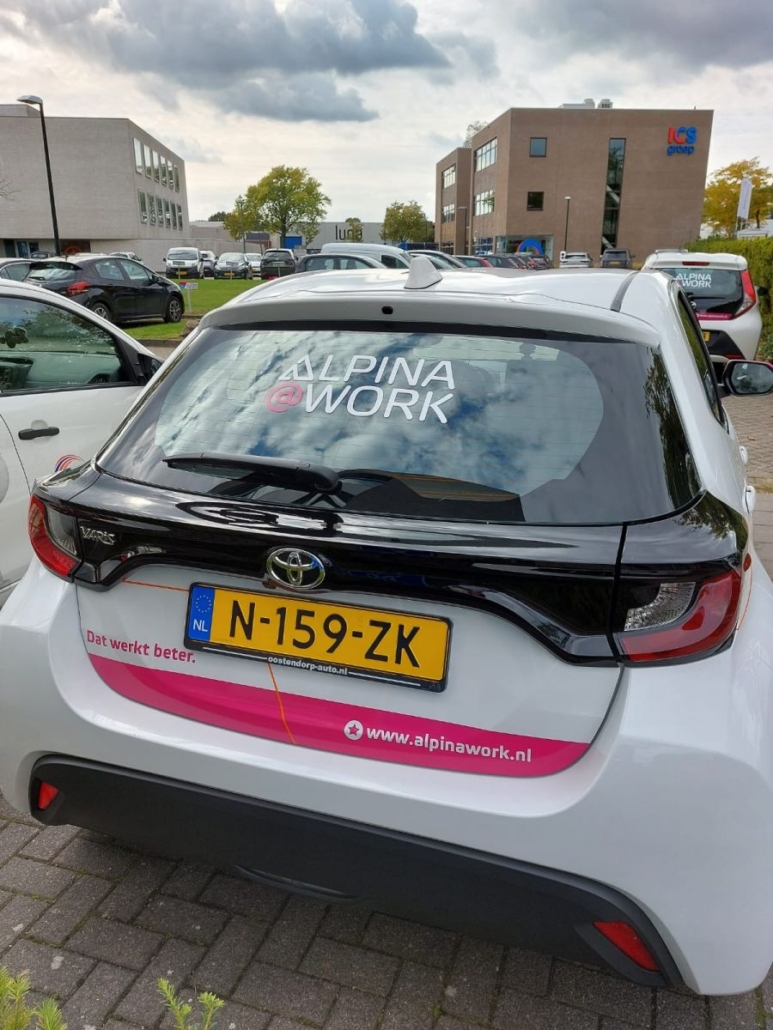Op zoek naar een leuke autobelettering? Denk er dan eens aan om de spiegels mee te beplakken of om elementen van de auto zelf bij de belettering te betrekken, zoals de tankdop. Voor Alpina@Work mochten we bij lekker in vorm deze opvallende, speelse autobelettering ontwerpen. Daar kun je mee aankomen!