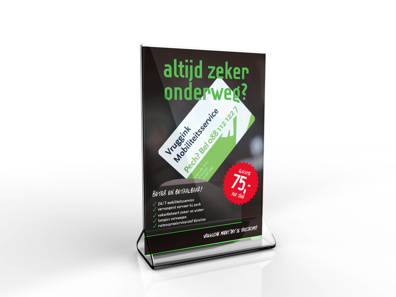 Terwijl je wacht op het onderhoud aan je auto, heb je als bezoeker van Autobedrijf Vruggink best even tijd om wat slimme tips te lezen. Bij lekker in vorm mochten we hiervoor diverse baliediesplays ontwerpen die klanten attenderen op voordelige mogelijkheden voor onderhoud en service.