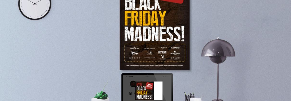 Vanwege het succes van de jubileumactie deed T-Time hem op Black Friday nog eens dunnetjes over. Bij lekker in vorm maakten we er winkelposters en een instagram bericht voor.