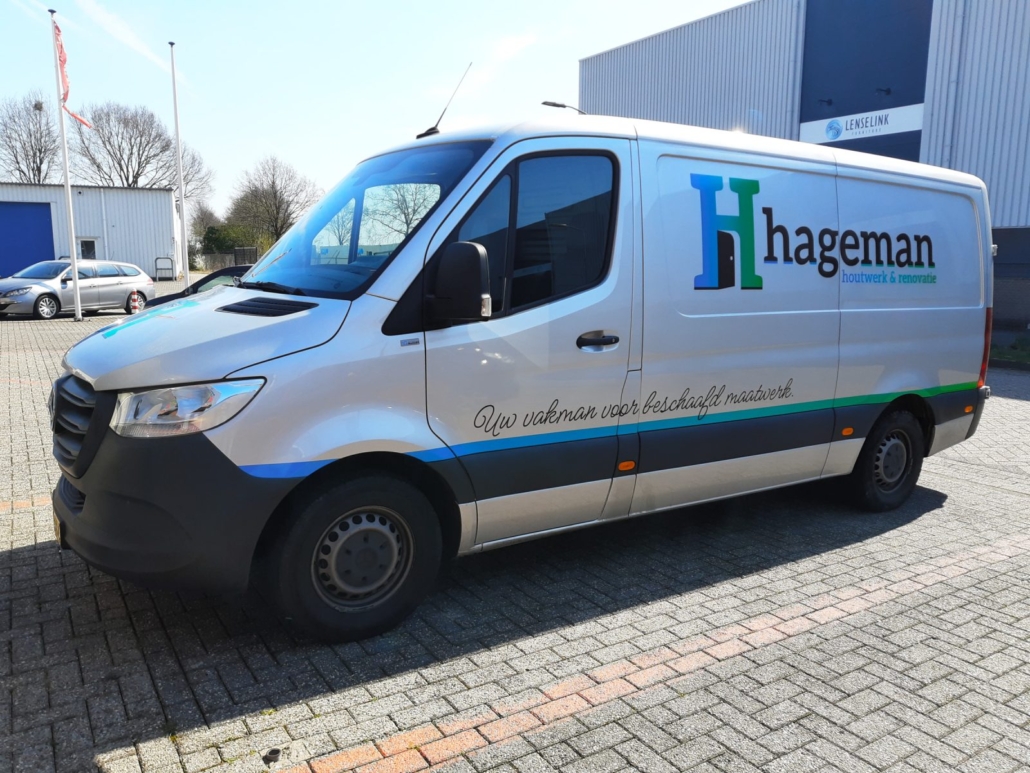 Zeker als jonge ondernemer kun je met een goed beletterde bedrijfswagen het verschil maken. Stan Hageman van Hageman houtwerk & renovatie vroeg Lekker in Vorm daarom om een verzorgd ontwerp te maken voor zijn nieuwe Mercedes-bus.