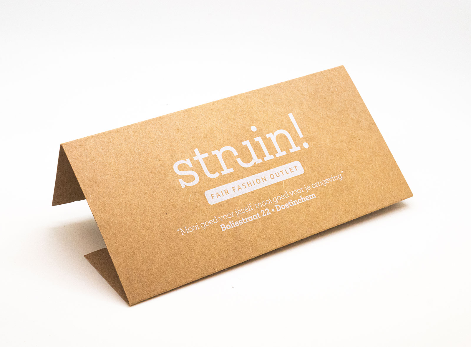 Leuk om te geven: bij lekker in vorm mochten we voor struin! deze cadeaubon ontwerpen, uitgevoerd met witte inkt op stevig kraftpapier. De bon kan eenvoudig tot een echt cadeautje dichtgevouwen worden en kan vervolgens verzegeld worden met een eigen sticker.
