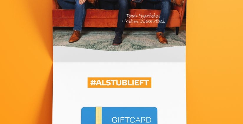 Is het afsluiten van je hypotheek gelukt? Dan doet team Hypotheken van Heilbron je graag een giftcard cadeau om je te feliciteren. Bij lekker in vorm mochten we hier een feestelijke kaart voor ontwerpen. Het geheel is gedrukt op metallic papier met een bijpassende sprankelende envelop.