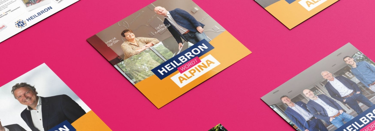 De komende tijd maakt de naam Heilbron in heel Nederland plaats voor de nieuwe naam Alpina. Voor de diverse vestigingen mochten we bij lekker in vorm items ontwikkelen voor de bijbehorende naamswijzigingscampagne. Denk hierbij aan diverse mailings en advertenties vóór en ná de naamswijziging.