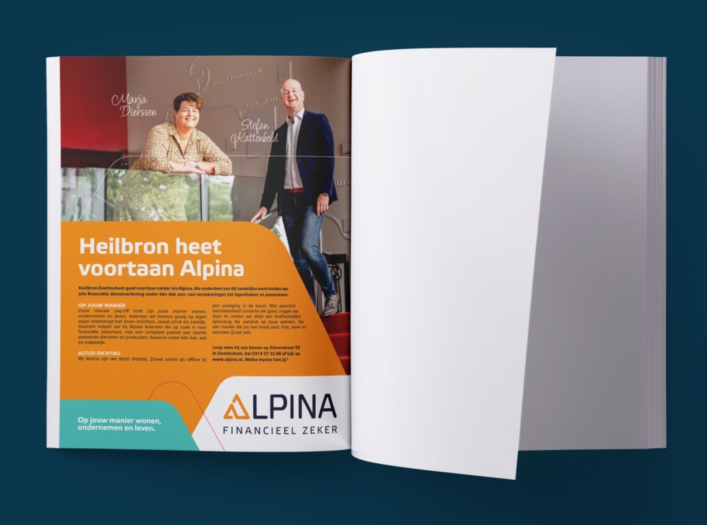 De komende tijd maakt de naam Heilbron in heel Nederland plaats voor de nieuwe naam Alpina. Voor de diverse vestigingen mochten we bij lekker in vorm items ontwikkelen voor de bijbehorende naamswijzigingscampagne. Denk hierbij aan diverse mailings en advertenties vóór en ná de naamswijziging.