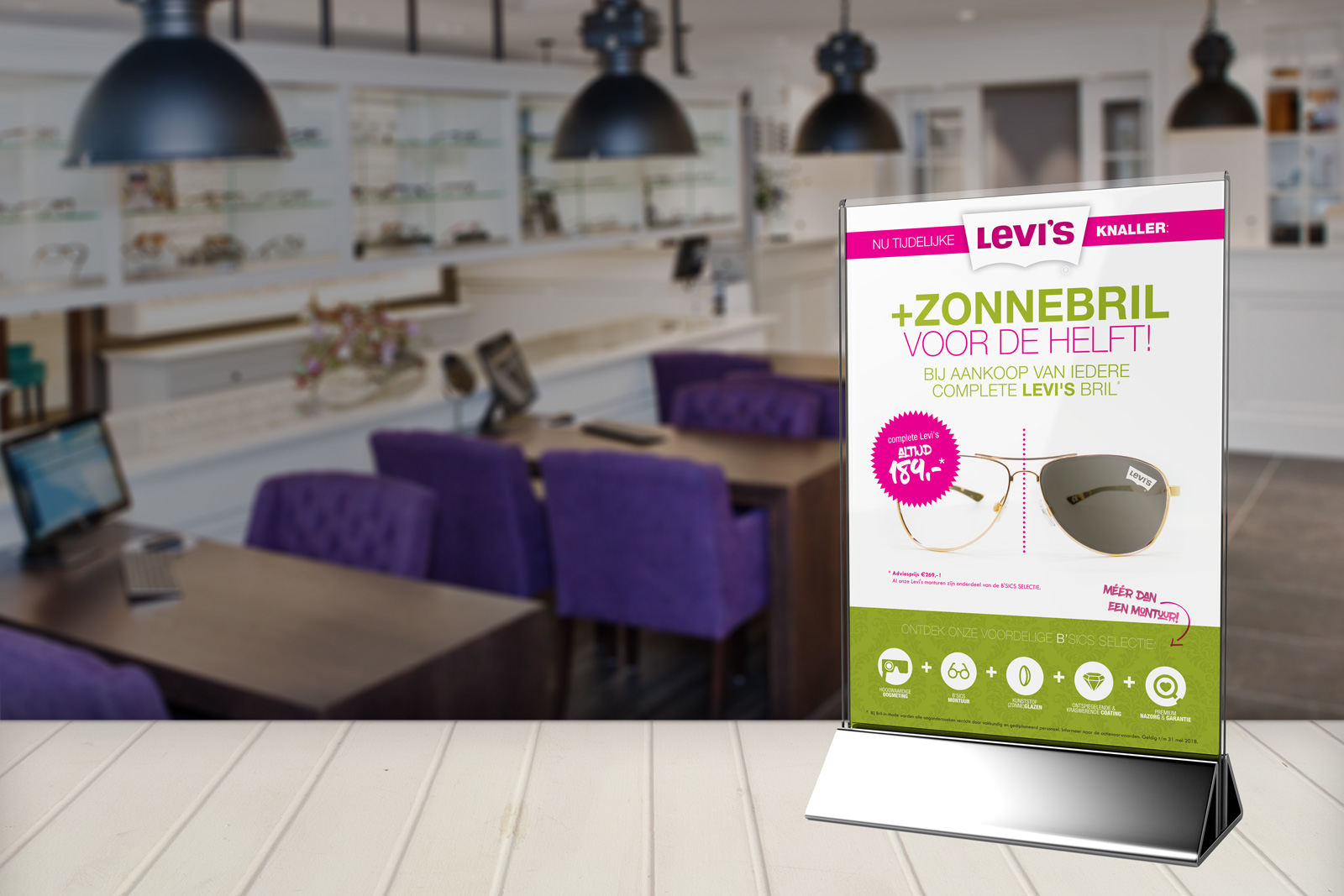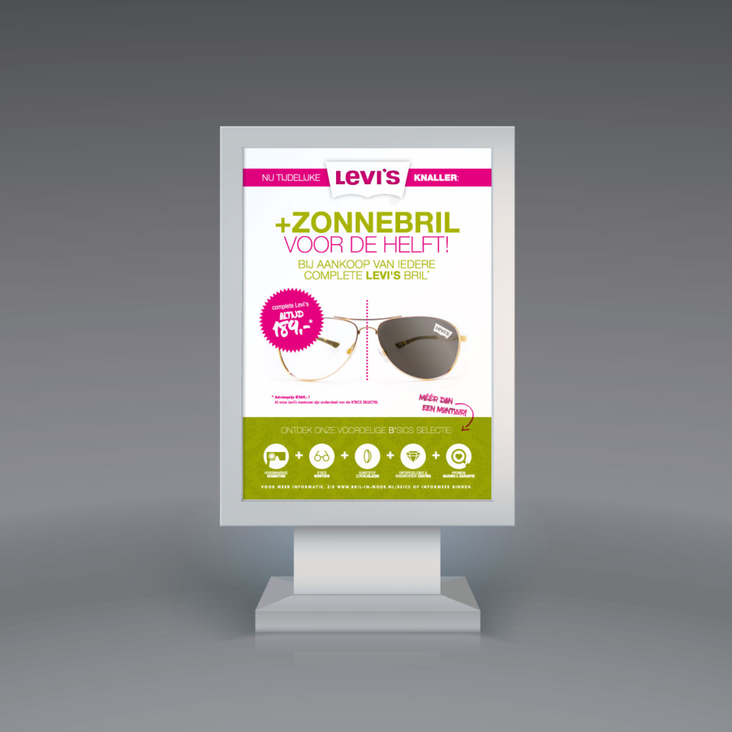 Normaal is een complete Levi’s bril voor €189,- uit de B’SICS SELECTIE van Bril-in-Mode al een koopje (adviesprijs €269,-!), maar de komende weken maakt onze opticien het nóg zonniger: bij aankoop van een complete Levi’s bril ontvang je tijdelijk maar liefst 50% korting op een Levi’s zonnebril op sterkte!