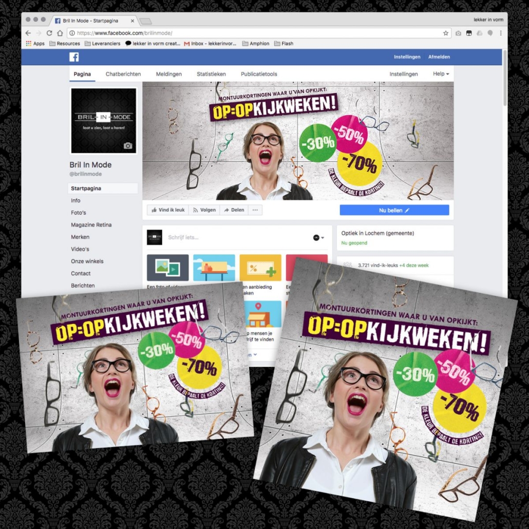 Ook dit jaar mochten we als merksetters bij lekker in vorm weer een mooie campagne ontwikkelen, met o.a. een direct mailing (presale) naar vaste klanten, huis-aan-huis flyers, advertenties en diverse items in en rondom de winkel en online. Hierboven zie je ook de bijbehorende reclamespot die lekker in vorm mocht monteren voor narrowcasting op Optiek TV en als pre-roll op TV8.