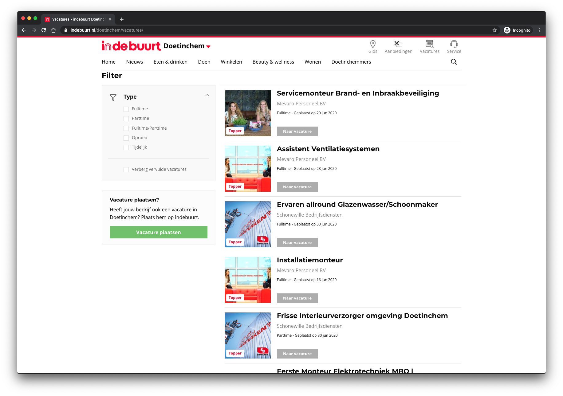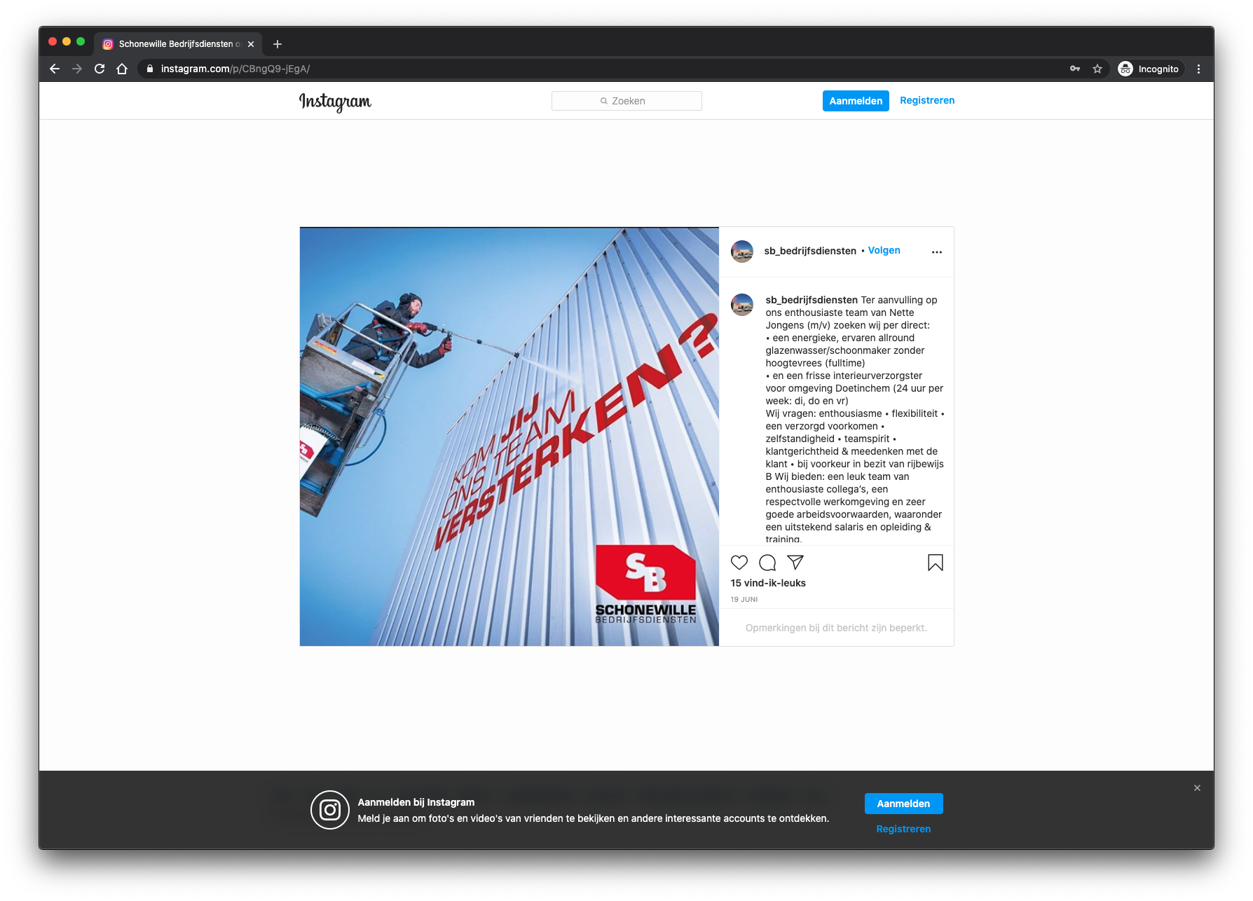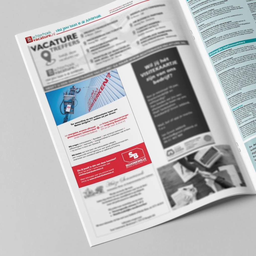 Schonewille Bedrijfsdiensten zoekt ter aanvulling op hun enthousiaste team van Nette Jongens m/v een energieke, ervaren allround glazenwasser/schoonmaker en een frisse interieurverzorger. Bij lekker in vorm verzorgden we de copy, de opmaak en de mediaplanning van een mooie vacature. Deze verscheen zowel offline in Contact en Doetinchems Vizier als online op Indebuurt en social media.