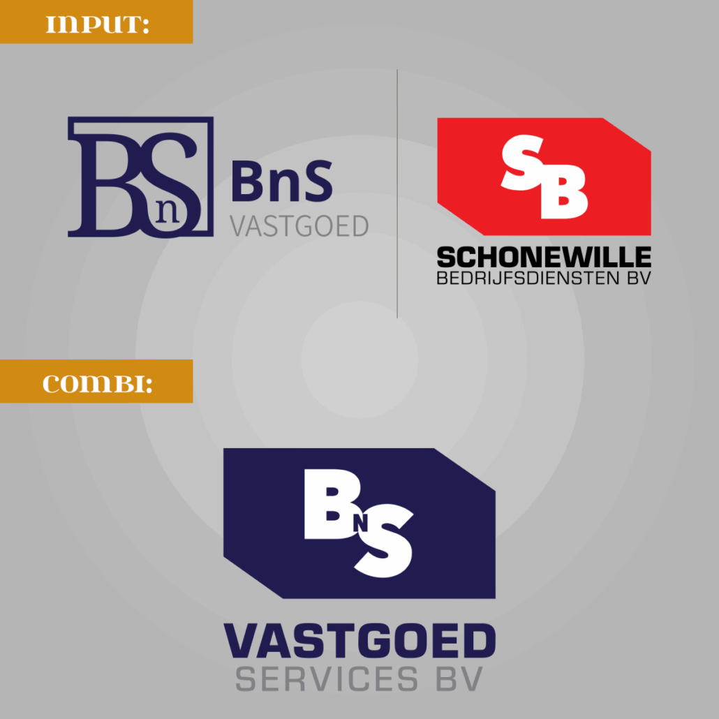 We combineerden daarvoor de naam en kleurstelling van BnS Vastgoed met het lettertype en het icoon van Schonewille Bedrijfsdiensten. Zo ontstond een logo dat vertrouwd oogt en de samenwerking helder communiceert. Twee sterke merken, één krachtige identiteit.