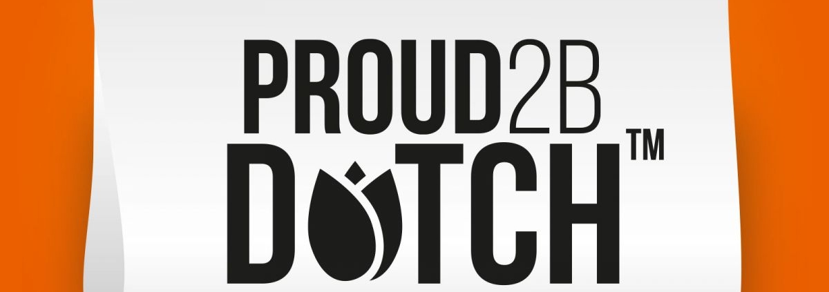 Het resultaat: “Proud 2B Dutch”. Het logo met stijvolle tulp is in één drukkleur vormgegeven in de vorm van een kledinglabel en is daardoor makkelijk en speels toepasbaar op tal van etiketten en verpakkingen, ook in kleinformaat.