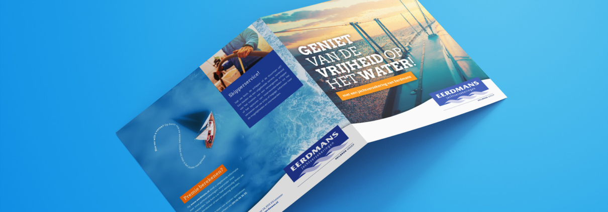 Eerdmans mag zich met maar liefst 50 jaar ervaring met recht specialist noemen op het gebied van verzekeringen voor zowel kleine sloepjes als grote zeiljachten. Bij lekker in vorm mochten we een folder ontwerpen met alle voordelen van een Eerdmans jachtverzekering overzichtelijk op een rijtje. De folder is zowel in het Nederlands als in het Duits gepubliceerd.
