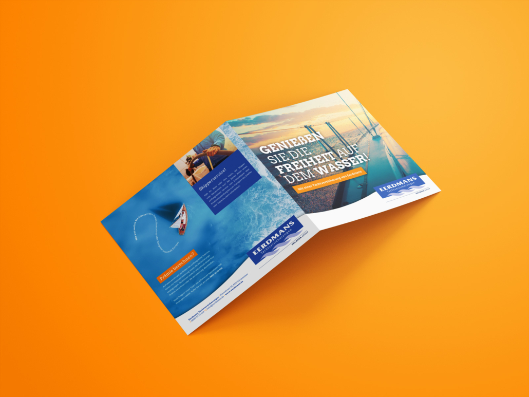 Eerdmans mag zich met maar liefst 50 jaar ervaring met recht specialist noemen op het gebied van verzekeringen voor zowel kleine sloepjes als grote zeiljachten. Bij lekker in vorm mochten we een folder ontwerpen met alle voordelen van een Eerdmans jachtverzekering overzichtelijk op een rijtje. De folder is zowel in het Nederlands als in het Duits gepubliceerd.