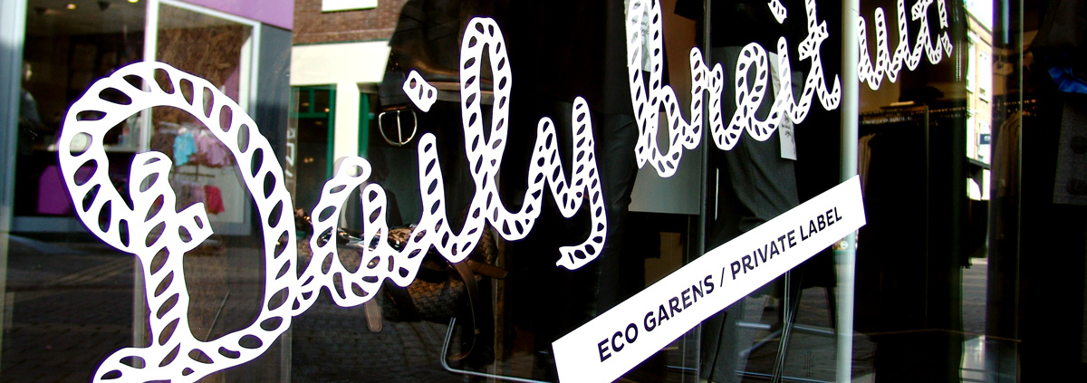 Daily gaat binnenkort een private label collectie voeren met duurzame ecogarens. Om hiervoor ruimte te maken organiseert Daily eerst een uitverkoop van haar zomercollectie. lekker in vorm ontwierp diverse saleproducten met de titel ‘Daily breit uit!’. De advertentie, raambelettering, posters en advertorial zijn deels informerend, deels actiematig.