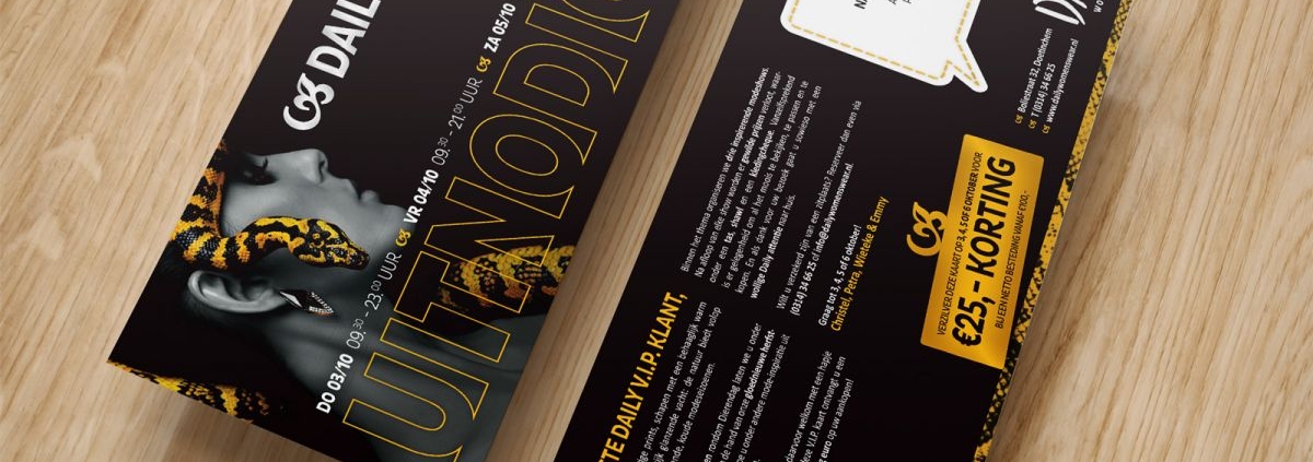 Bij lekker in vorm verzorgden we het ontwerp en de creatieve teksten van deze campagne, in de vorm van een uitnodiging c.q. kortingskaart, een stoepbordposter, social media posts, een salesbordje en een digitale nieuwsbrief om alvast een plaats mee te reserveren.