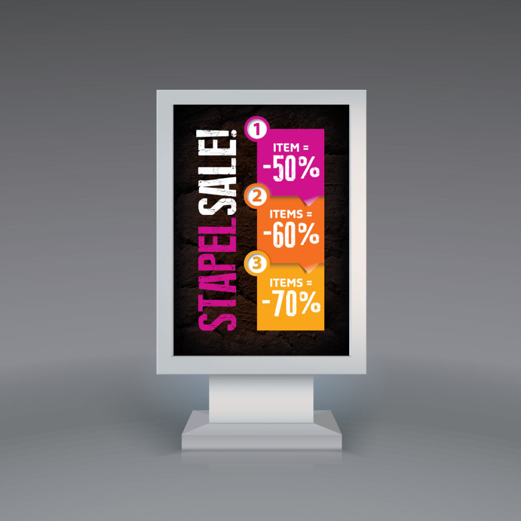 De T-Time sale gaat weer beginnen! Vaste klanten kunnen als eerste profiteren van de pré-sale. Daarna wordt heel winkelend Doetinchem ervan op de hoogte gebracht door middel van een stoepbordposter. lekker in vorm voorzag bestaande ontwerpen van nieuwe kleuren en nieuwe teksten.