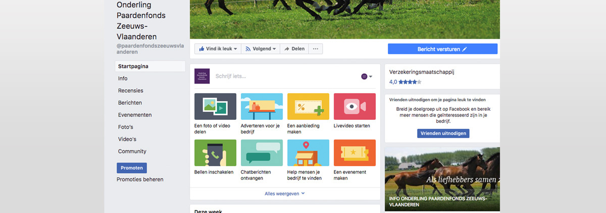 Als onderdeel van de nieuwe huisstijl voorzag lekker in vorm de kakelverse Facebookpagina van Onderling Paardenfonds Zeeuws-Vlaanderen van een omslagfoto en eerst een tijdelijke profielfoto. Het logo werd namelijk pas later in het jaar officieel aan alle leden onthult. Na de onthulling maakte de tijdelijke profieltekst plaats voor het officiële, herkenbare beeldmerk.