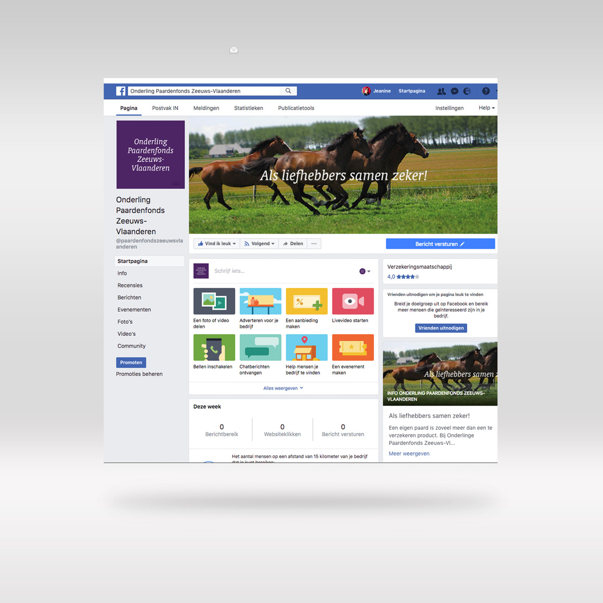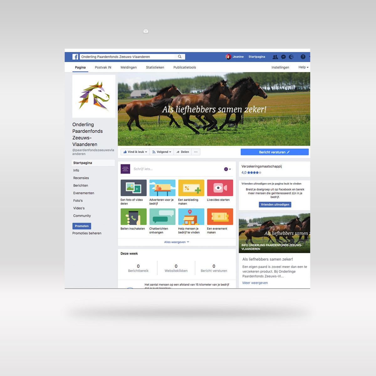 Als onderdeel van de nieuwe huisstijl voorzag lekker in vorm de kakelverse Facebookpagina van Onderling Paardenfonds Zeeuws-Vlaanderen van een omslagfoto en eerst een tijdelijke profielfoto. Het logo werd namelijk pas later in het jaar officieel aan alle leden onthult. Na de onthulling maakte de tijdelijke profieltekst plaats voor het officiële, herkenbare beeldmerk.