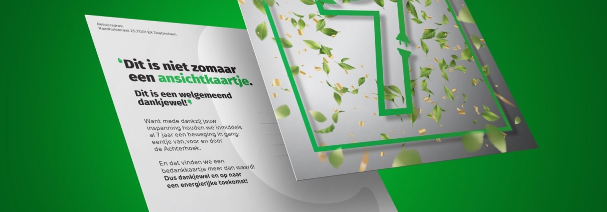 Agem houdt inmiddels al 7 jaar een beweging in gang: eentje van, voor en door de Achterhoek. Een mooie prestatie die je niet alleen bereikt. Vandaar dat we bij lekker in vorm deze felicitatiekaart mochten maken met een welgemeend dankjewel vanuit Agem voor alle betrokkenen.