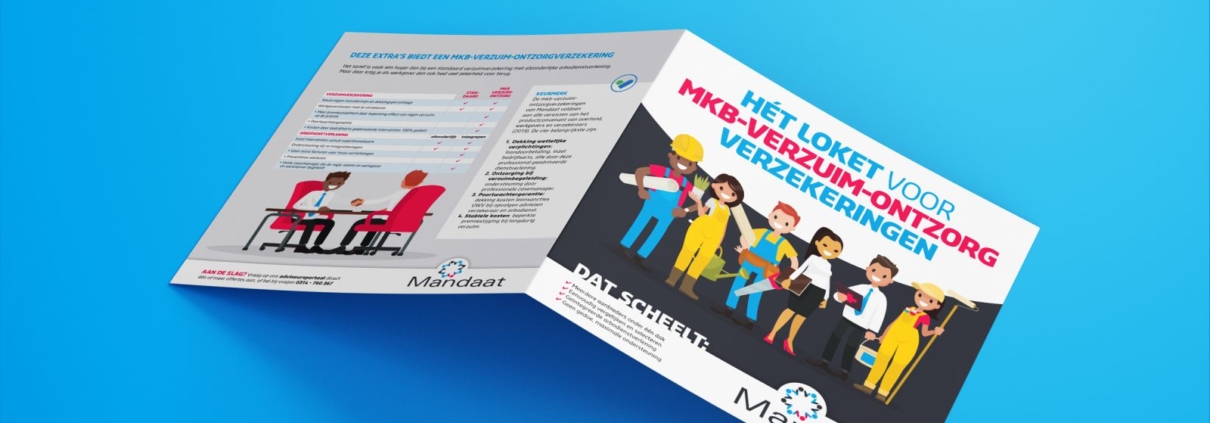 Bij lekker in vorm mochten we bestaande Mandaat flyer over de handige MKB-verzuim-ontzorgverzekering uitbreiden naar een folder, met daarin ook aandacht voor de samenwerking met Alpina@Work. Ook nu zorgen de kleurrijke illustraties, weetjes en grafieken er weer voor dat de feitelijke informatie prettig leesbaar is.