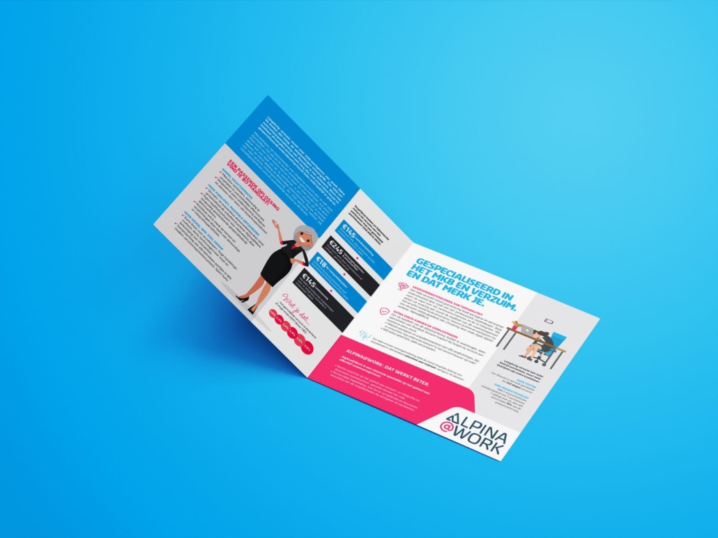 Bij lekker in vorm mochten we bestaande Mandaat flyer over de handige MKB-verzuim-ontzorgverzekering uitbreiden naar een folder, met daarin ook aandacht voor de samenwerking met Alpina@Work. Ook nu zorgen de kleurrijke illustraties, weetjes en grafieken er weer voor dat de feitelijke informatie prettig leesbaar is.