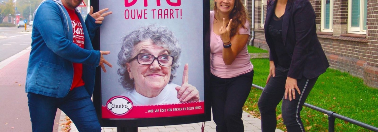 Een leuke opsteker voor ons als creatief bureau, maar natuurlijk ook fijne free publicity voor onze goede klant Gaabs. Eigenaresse Gabi Hunter ging er zelfs even haar bakwinkel voor uit om met ons op de foto te gaan! ![]()