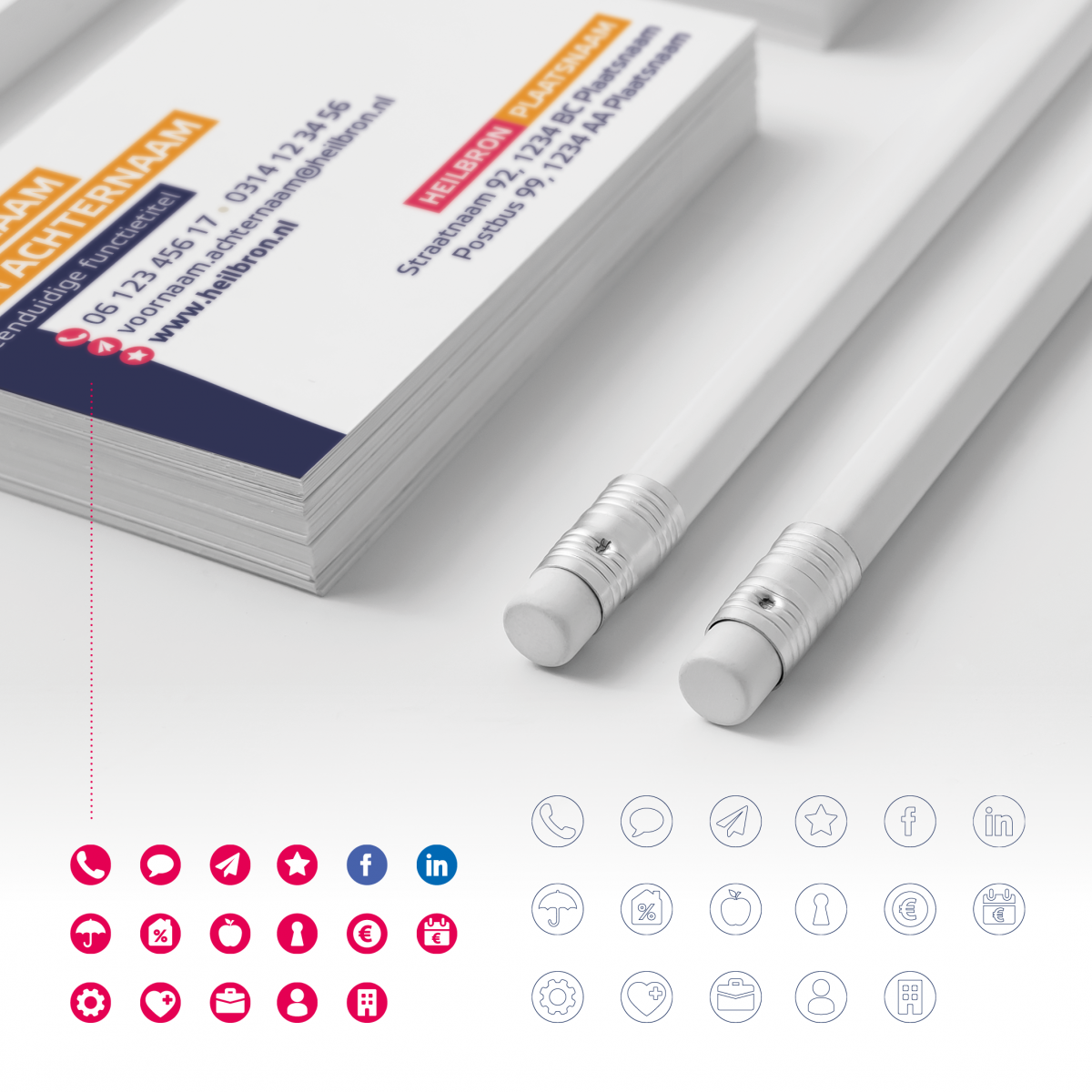 Voor uniformiteit binnen de Heilbron Groep mochten we bij lekker in vorm een set iconen ontwikkelen voor toepassing in de huisstijl. Dankzij hun eenvoudige vorm en kleurgebruik ogen de iconen niet alleen laagdrempelig en eigentijds, maar zijn ze ook in elke taal en in elk formaat herkenbaar en begrijpelijk.