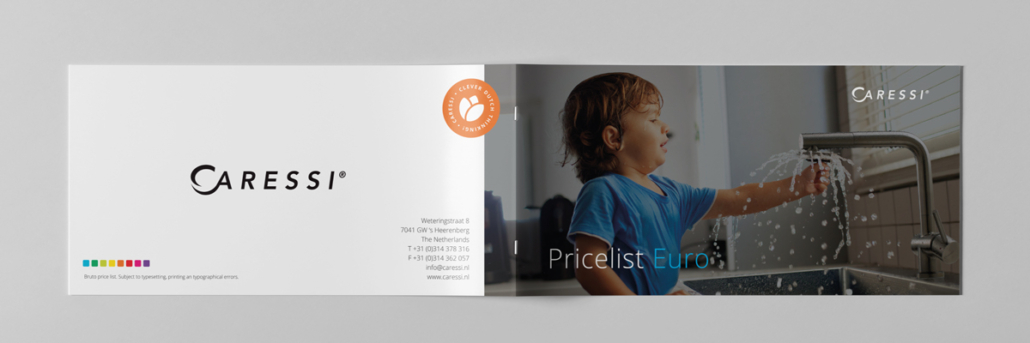 Deze pay-off is internationaal bruikbaar en wordt extra kracht bijgezet via een icoon: een tulp (schoonheid, strakke lijnen) op een lekker hollands oranje achtergrond. Zo is het Nederlandse erfgoed van Caressi niet langer te missen.
