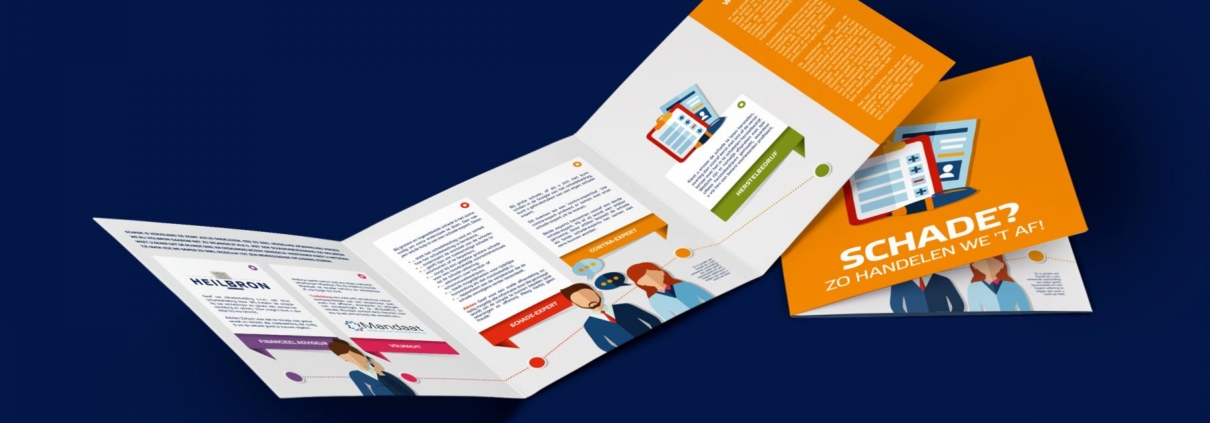 Om klanten eenvoudig in woord en beeld uit te leggen via welke kanalen en stappen hun schade afgehandeld wordt, mochten we bij lekker in vorm voor Heilbron een infografic in de vorm van een drieluik ontwerpen en schrijven.