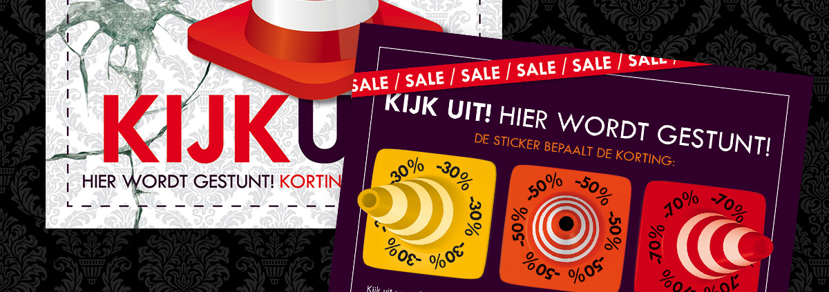 Het is sale bij Bril-in-Mode. De kleur sticker bepaalt de korting op het montuur. De campagne, genaamd ‘Kijk Uit!’ wordt uitgebreid onder de aandacht gebracht middels een direct mailing (presale) naar vaste klanten, huis-aan-huis flyers, advertenties en diverse items in en rondom de winkel.