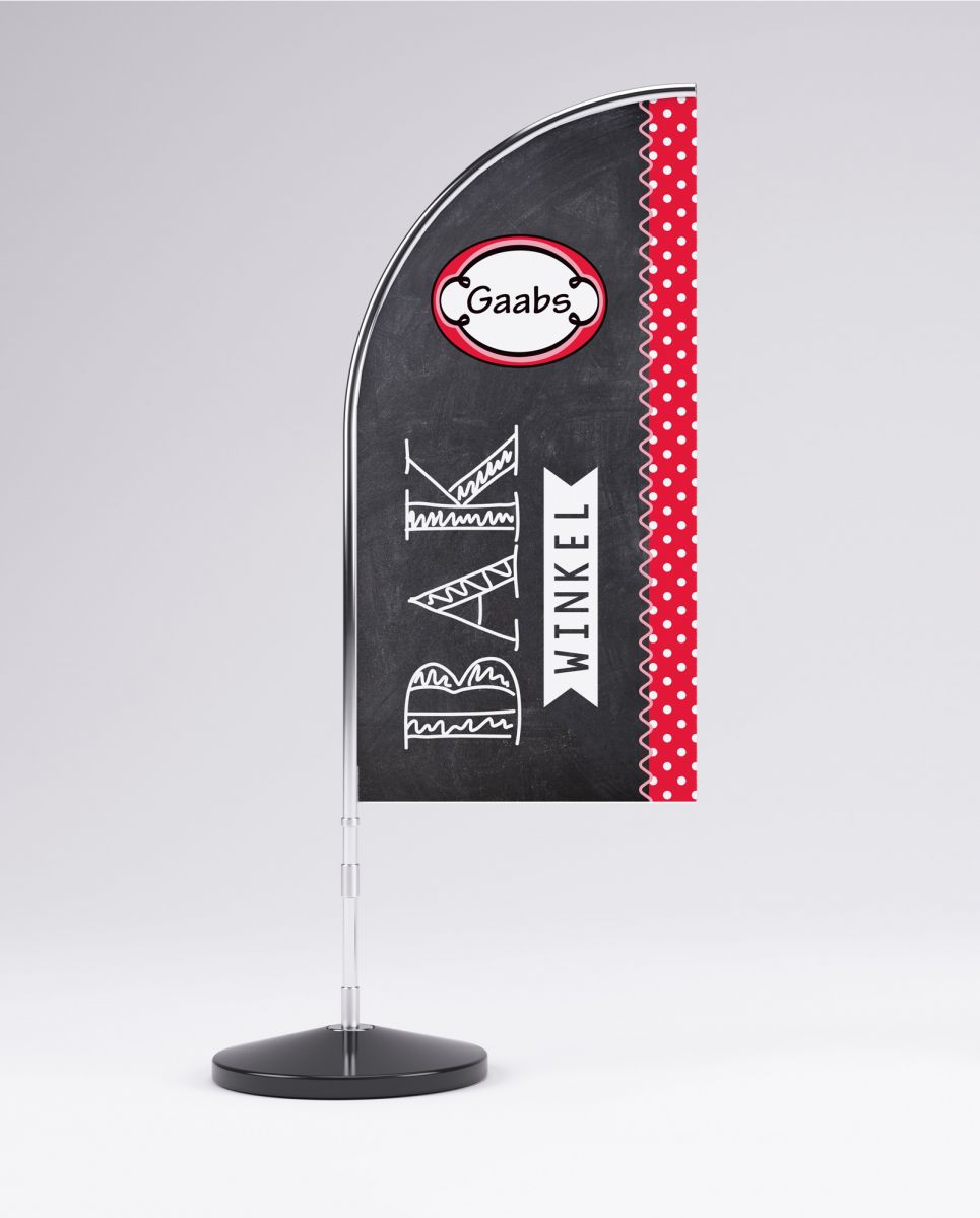 Om Gaabs te feliciteren met haar nieuwe onderkomen, ontwierp lekker in vorm een kleine maar opvallende beachflag. Niet alleen handig om voor de deur te zetten, maar ook compact genoeg om makkelijk mee te nemen naar diverse workshops en evenementen.