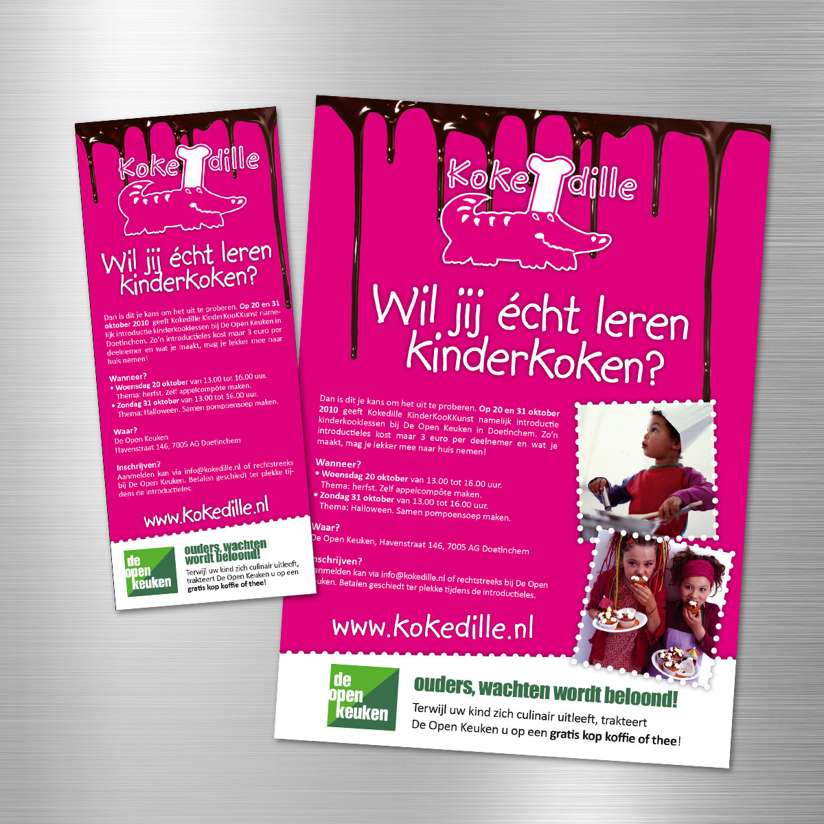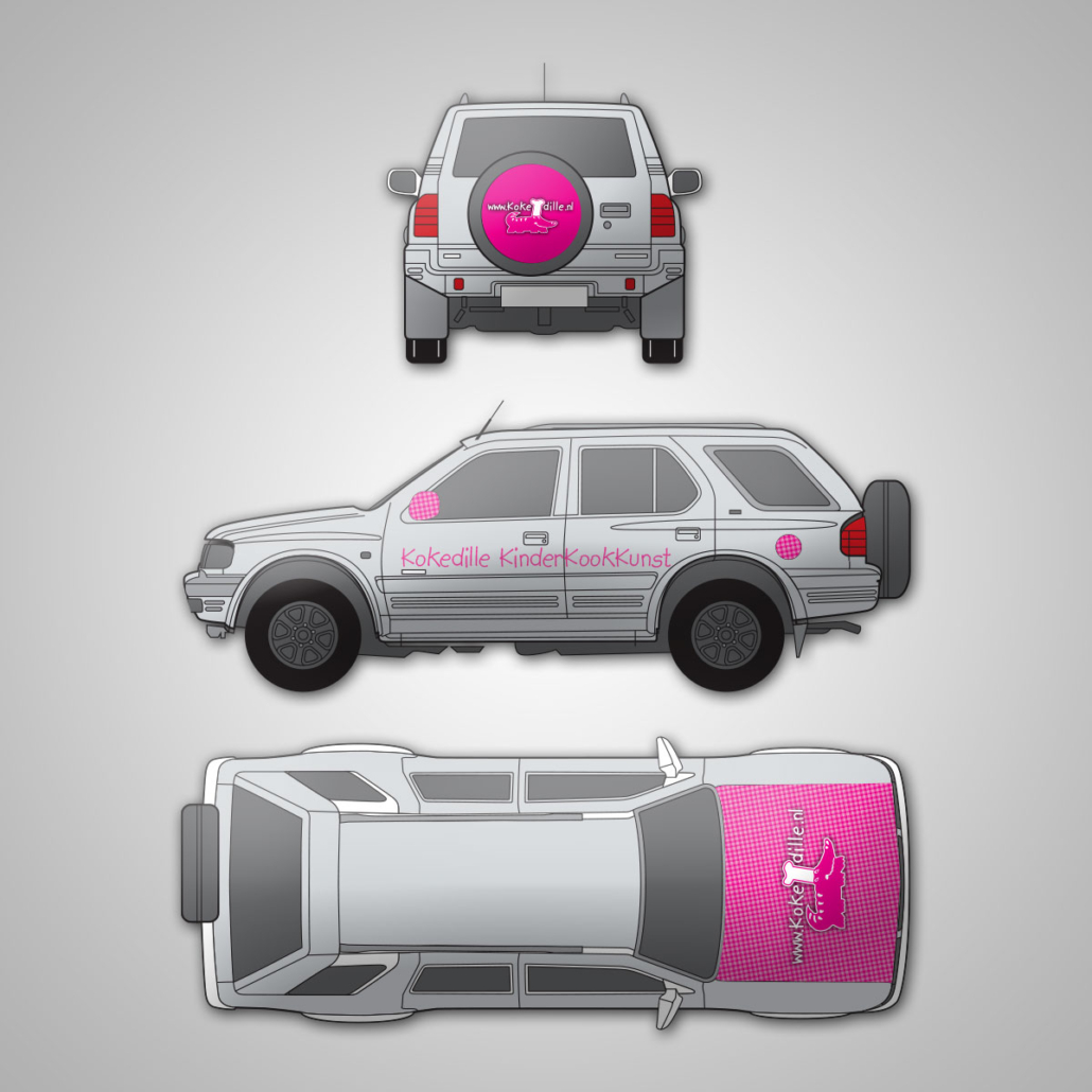 lekker in vorm ontwierp voor Kokedille onder andere een smakelijke huisstijl, autobelettering en bebording. Lekker speels en opvallend voor kinderen, maar ook professioneel genoeg voor ouders.