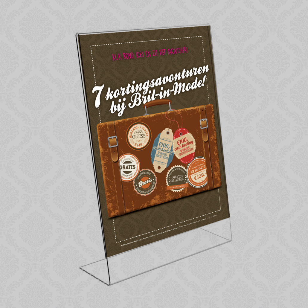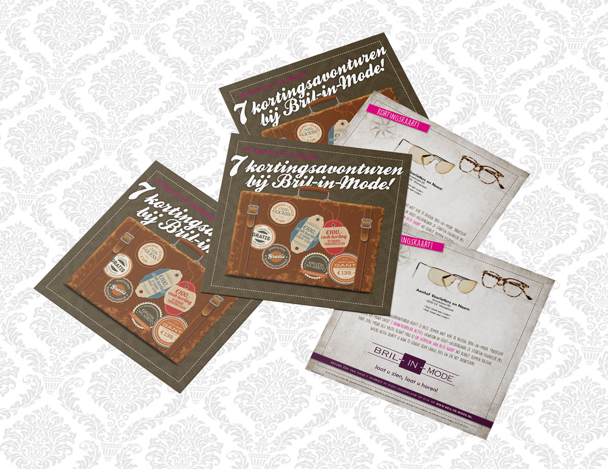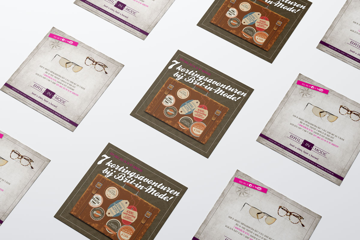 Voor de grootste kortingsavonturen hoef je deze zomer niet ver te reizen. Bril-in-mode trakteer namelijk op maar liefst 7 avontuurlijke acties, gewoon in Oost-gelderland! De campagne wordt uitgebreid onder de aandacht gebracht middels een direct mailing (presale) naar vaste klanten, huis-aan-huis flyers en diverse items in en rondom de winkel en online.
