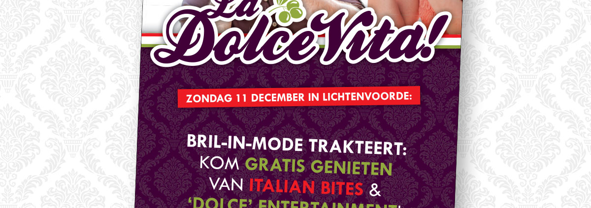 Op iedere eerste koopzondag na Sinterklaas viert heel Lichtenvoorde ‘Let it Snow’. Dit jaar gaat bril-in-mode independent: Koop je deze dag een Italy Independent bril dan kost het montuur slechts €1,-. lekker in vorm maakte alle campagne-items, waaronder een strooiflyer, gevelbanner, stoepbordposter en advertentie.