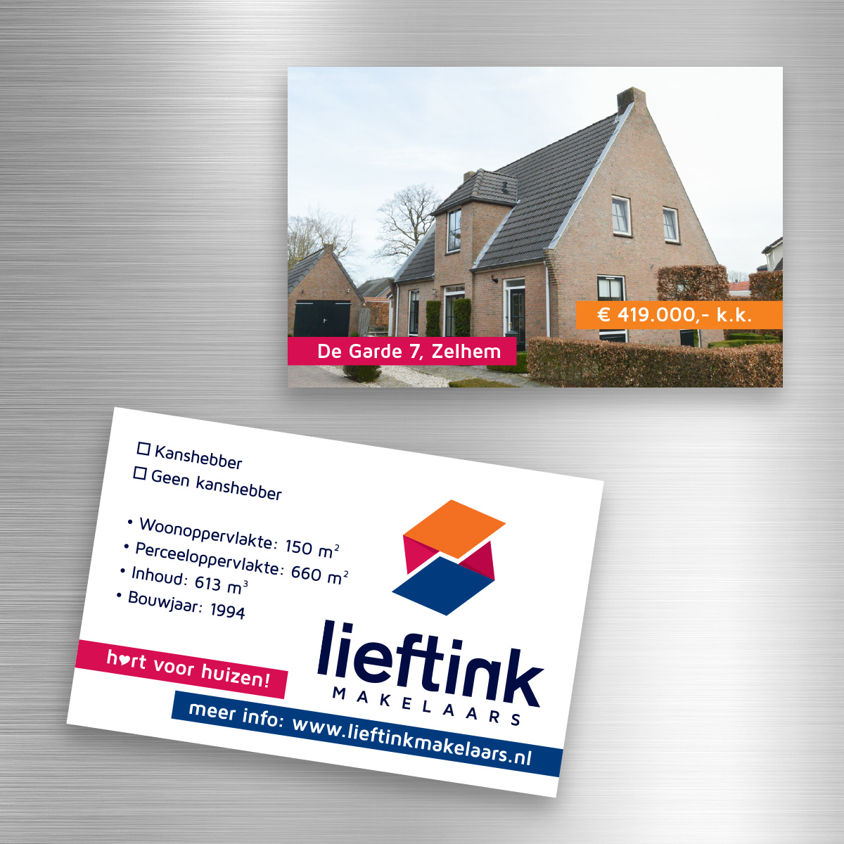 Omdat het aantal bezichtigingen tijdens een landelijke Open Huizen Dag overweldigend kan zijn, ontwierp Lieftink Makelaars samen met lekker in vorm handige verkoopkaartjes. Deze krijg je als kijker mee van de bewoner en geeft je de mogelijkheid aan te geven of de bekeken woning een kanshebber was of niet. Een handig en sympathiek geheugensteuntje!