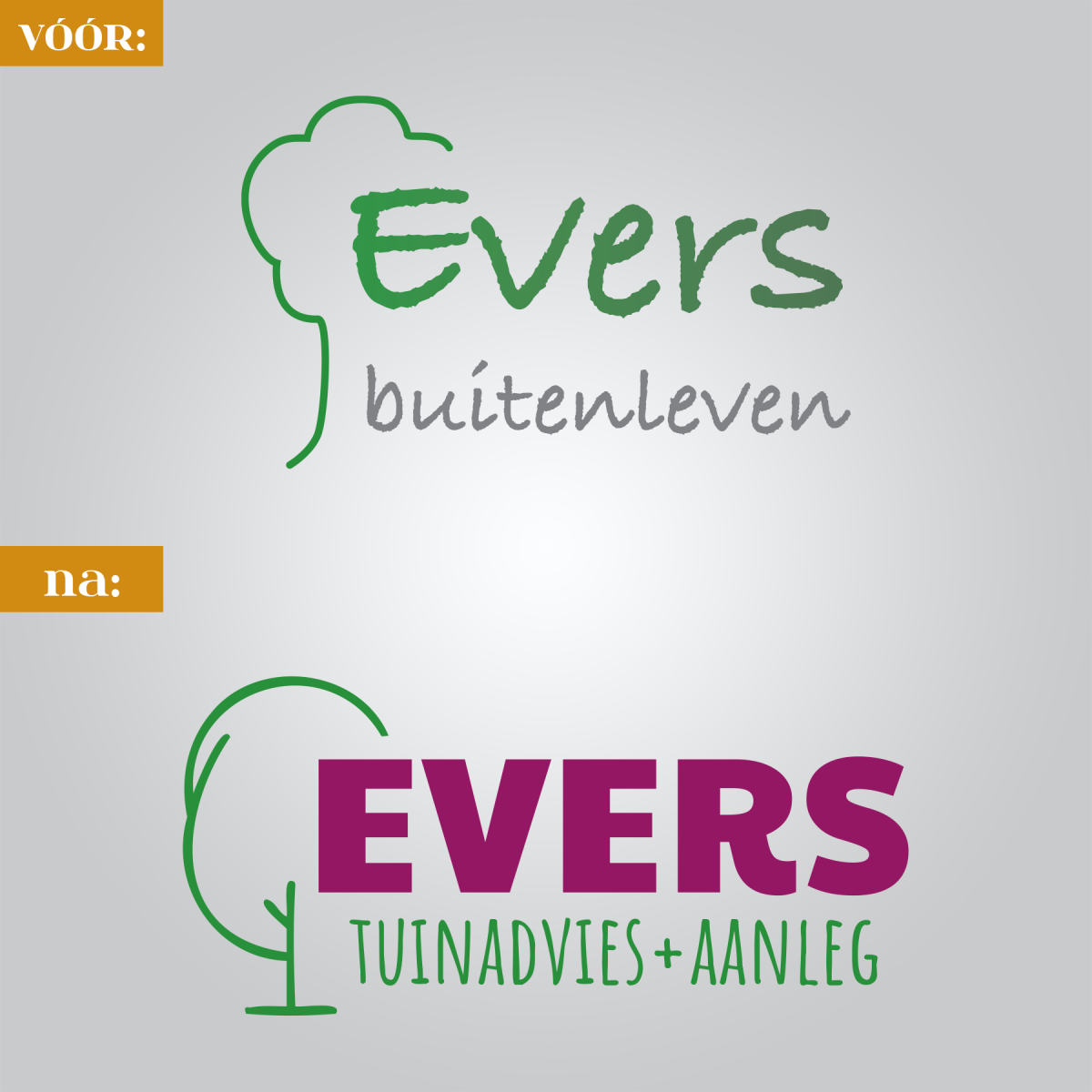 Voor extra opvalwaarde tussen andere hoveniers hebben we daarna aanvullende huisstijlkleuren in kaart gebracht, waaronder een warme kleur paars die het persoonlijke karakter van Evers verder onderstreept. Tot slot hebben we kritisch naar de uitlijning van de diverse elementen gekeken zodat het logo praktisch toepasbaar is.