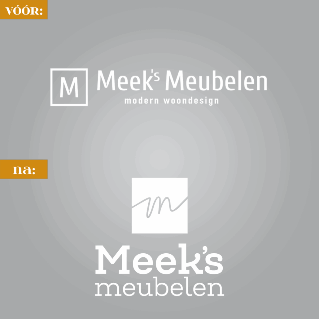 Bij lekker in vorm mochten we meedenken over een logorestyling voor Meek’s Meubelen. Uitgangspunt: minder zakelijk, makkelijker toepasbaar.