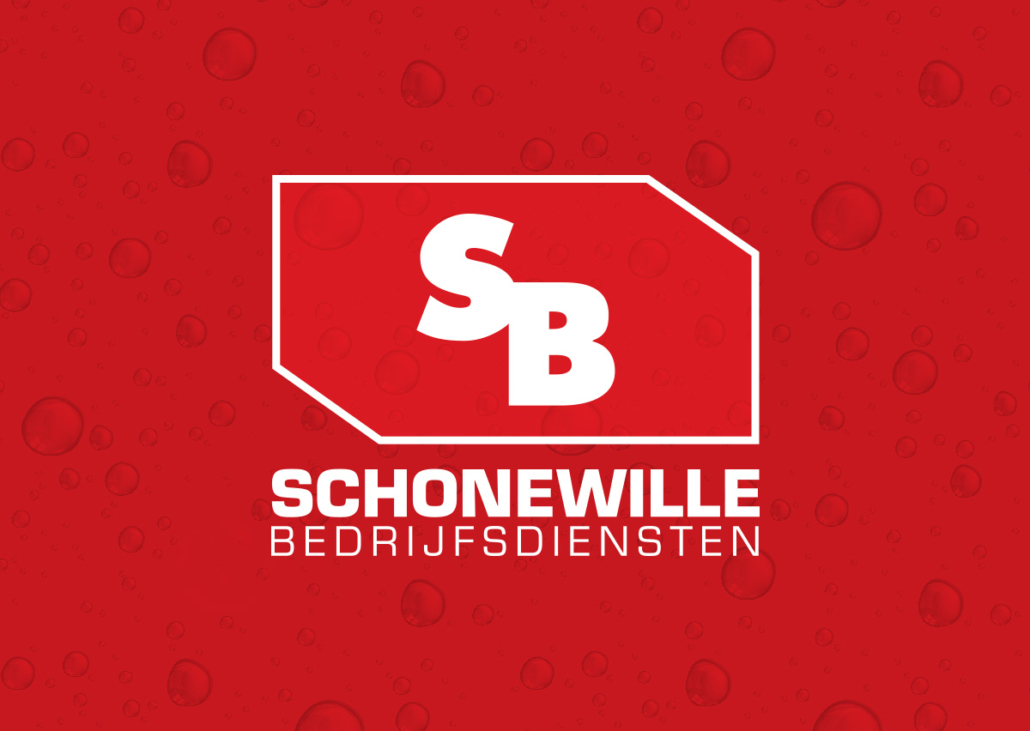 Toen Schonewille Bedrijfsdiensten bij lekker in vorm kwam met het verzoek om diverse huisstijlitems te ontwikkelen, was het eerste advies om het bestaande logo verder te professionaliseren. Het veelgebruikte, maar kinderlijke lettertype Comic Sans werd vervangen door een stevig, zakelijk alternatief. Ook de harde zwarte rand verdween en maakte plaats voor een meer open en transparante uitstraling, vooral zichtbaar in de voornamelijk gebruikte dianegatieve versie op rode achtergrond. Tenslotte kreeg ook de volledige naam ‘Schonewille’ een plaats in het logo.