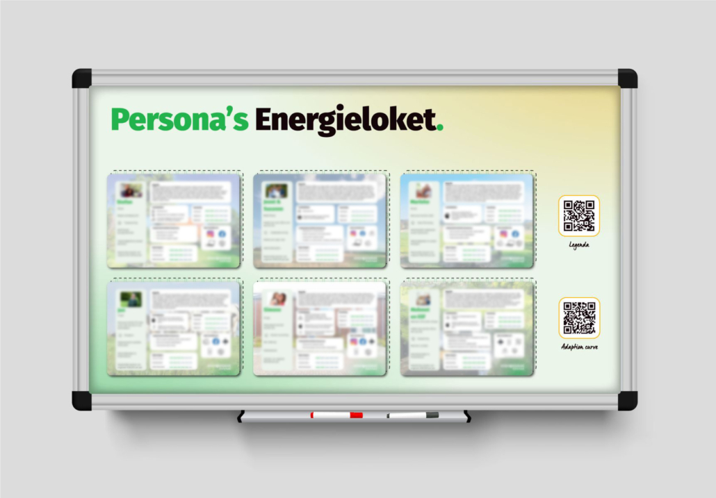 Om de zelfgemaakte persona’s van Energieloket Achterhoek een mooie vaste plek te kunnen geven op kantoor mochten we bij lekker in vorm dit magneetbord ontwerpen waarbij de persona’s, gedrukt op magneetfolie, makkelijk te pakken en terug te plakken zijn voor gebruik.