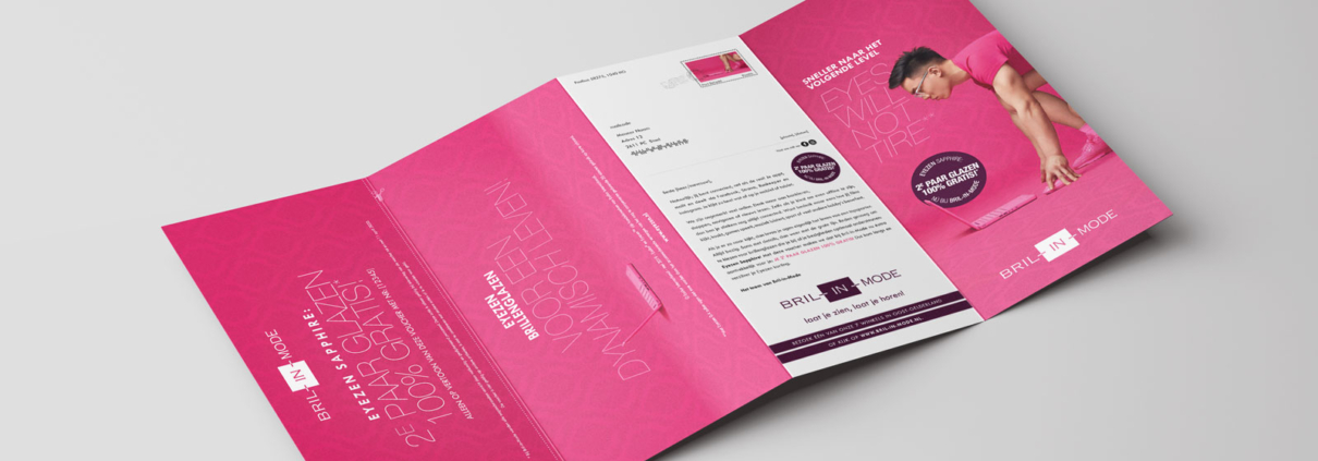 Bij lekker in vorm mochten we de bestaande flitsende Essilor mailing met voucher voorzien van een herkenbaar Bril-in-Mode jasje.