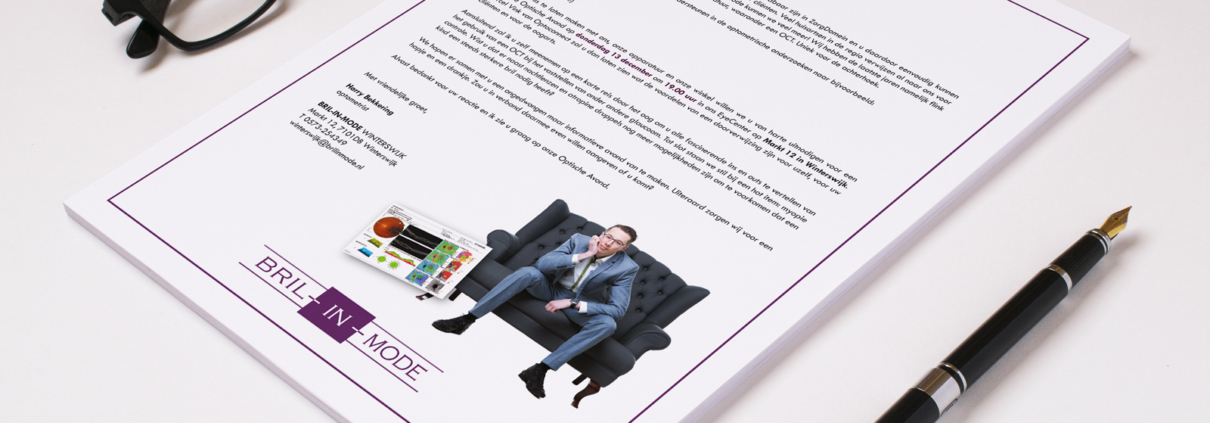 Bril-in-Mode is sinds kort aangesloten bij Optoconnect. Daarmee wordt het voor de huisarts gemakkelijk om patiënten naar Bril-in-Mode door te verwijzen voor onderzoeken. Sneller, goedkoper en ontlastend voor de oogarts. Bij lekker in vorm mochten we een tweedelige mailing maken om huisartsen op de hoogte te stellen: enerzijds een informerende brief over hoe Optoconnect werkt, anderzijds een uitnodiging voor een informerende Optische Avond in het Eyecenter van Bril-in-Mode.