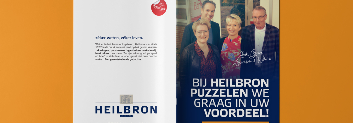 Voor wat extra naamsbekendheid onder de bewoners van Aalten mochten we bij lekker in vorm voor Heilbron Aalten een mailing ontwikkelen met een gezellige puzzelactie, onder het motto ‘Bij Heilbron puzzelen we graag in uw voordeel.” Door mee te doen en de juiste oplossing op te sturen, maak je kans op een dinercheque t.w.v.w. €100,- bij Herbergh d’Olde Marckt in Aalten. Daarnaast kun je de mailing bij Heilbron Aalten inwisselen voor een leuk Heilbron puzzelboekje.