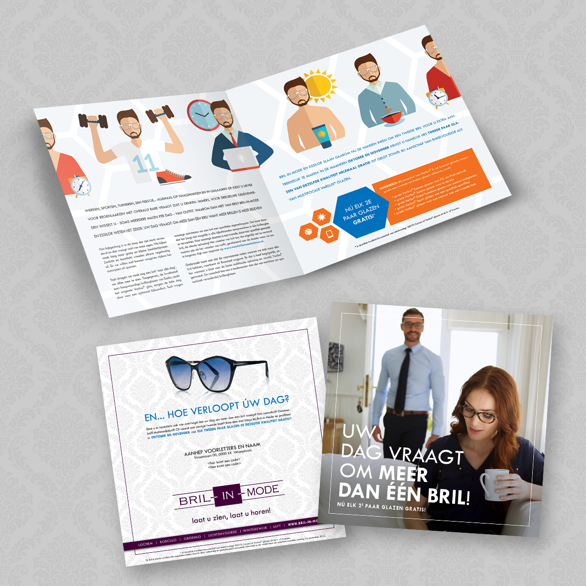 Werken, sporten, tuinieren, een feestje… allemaal op naaldhakken en in galajurk? Of kies je liever voor regenlaarzen met overall? Rare vraagt zul je denken. Immers, voor dergelijke gelegenheden wissel je – soms meerdere malen per dag – van outfit. Waarom dan niet van bril? Bril-in-Mode en Essilor weten het zeker: je dag vraagt om meer dan één bril! Want meer brillen is meer beleven!
