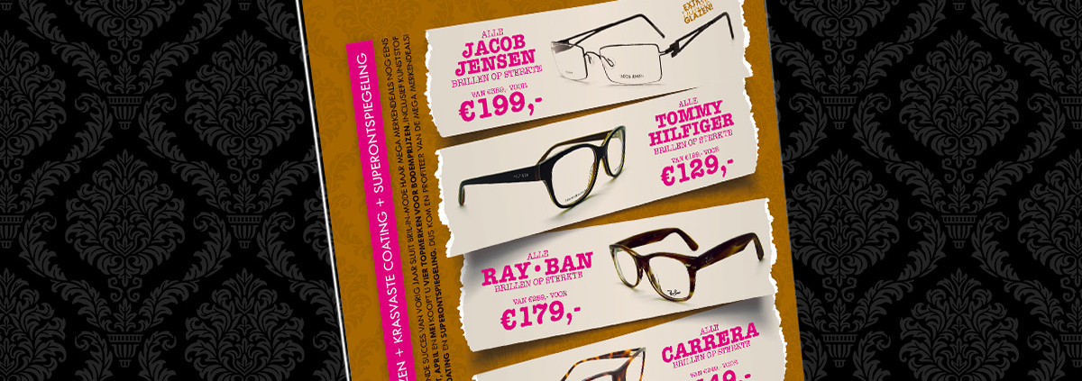 Het is actie bij Bril-in-Mode: Mega Merkendeals, met Jacob Jensen, Tommy Hilfiger, Ray-Ban en Carrera. De campagne wordt uitgebreid onder de aandacht gebracht via de Retina, huis-aan-huis flyers en diverse items in en rondom de winkel.